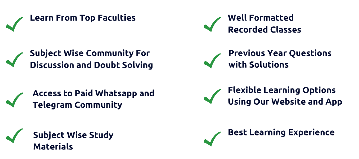 Including: learning from top instructor, well-structured recorded classes, access to subject-specific online communities for discussion, and high-quality study materials. Overall, the course promises a superior learning experience.